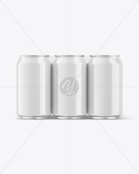 6 Glossy Cans Pack in Shrink Wrap Mockup