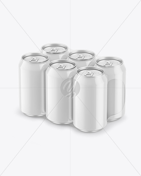 6 Glossy Cans Pack in Shrink Wrap Mockup