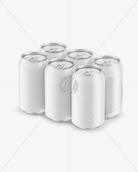 6 Matte Cans Pack in Shrink Wrap Mockup