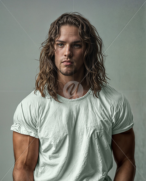 A Male Model with Long Hair Wearing a T-Shirt Mockup