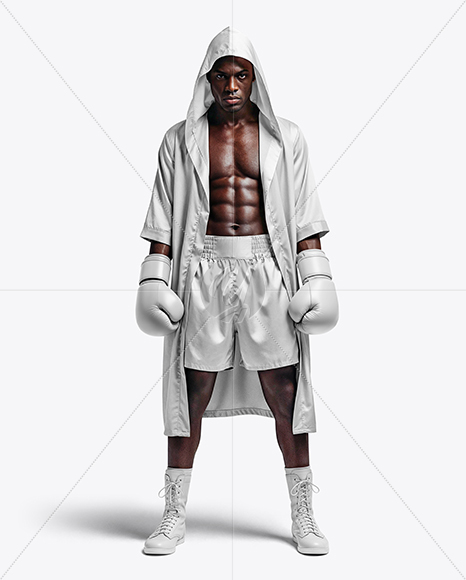 Black Man Wearing Boxing Kit with Robe and Shorts Mockup