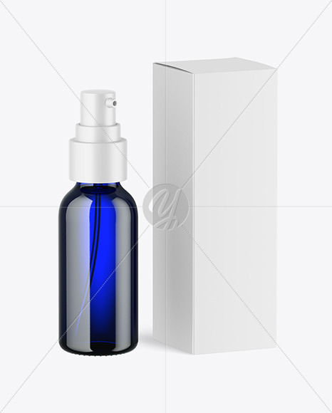 The Blue Glass Pump Bottle w/ Box Mockup is a stylish and sophisticated packaging design perfect for your cosmetic, hair or skincare products. Featuring a stunning blue glass bottle with a matching pump dispenser, the mockup is perfect for showcasing your cream, gel or treatment products. The golden layer adds an extra touch of luxury while the half side view allows for easy visibility of the product. The packaging also includes a sleek paper box, making it an ideal pack for gifting or as a set. This mockup is perfect for showcasing your shower or conditioner products and will make your product stand out on the shelves.