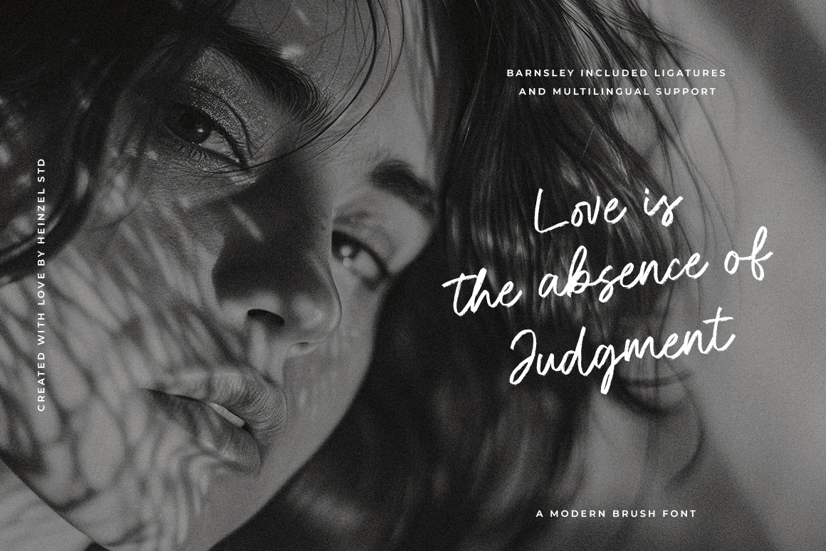 Brittney and Jasmine is a modern brush script font that combines bold strokes with a touch of elegance. Designed to capture the dynamic feel of hand-lettering, this font delivers a stylish and contemporary look that's perfect for branding, logos, invitations, social media graphics, and more. With its natural brush texture and fluid letterforms, Barnsley Brush adds personality and flair to any design project, making your words stand out with effortless charm.