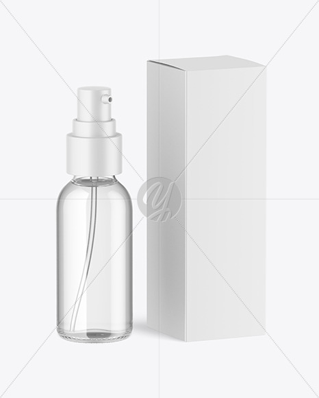 Clear Glass Pump Bottle w\ Box Mockup