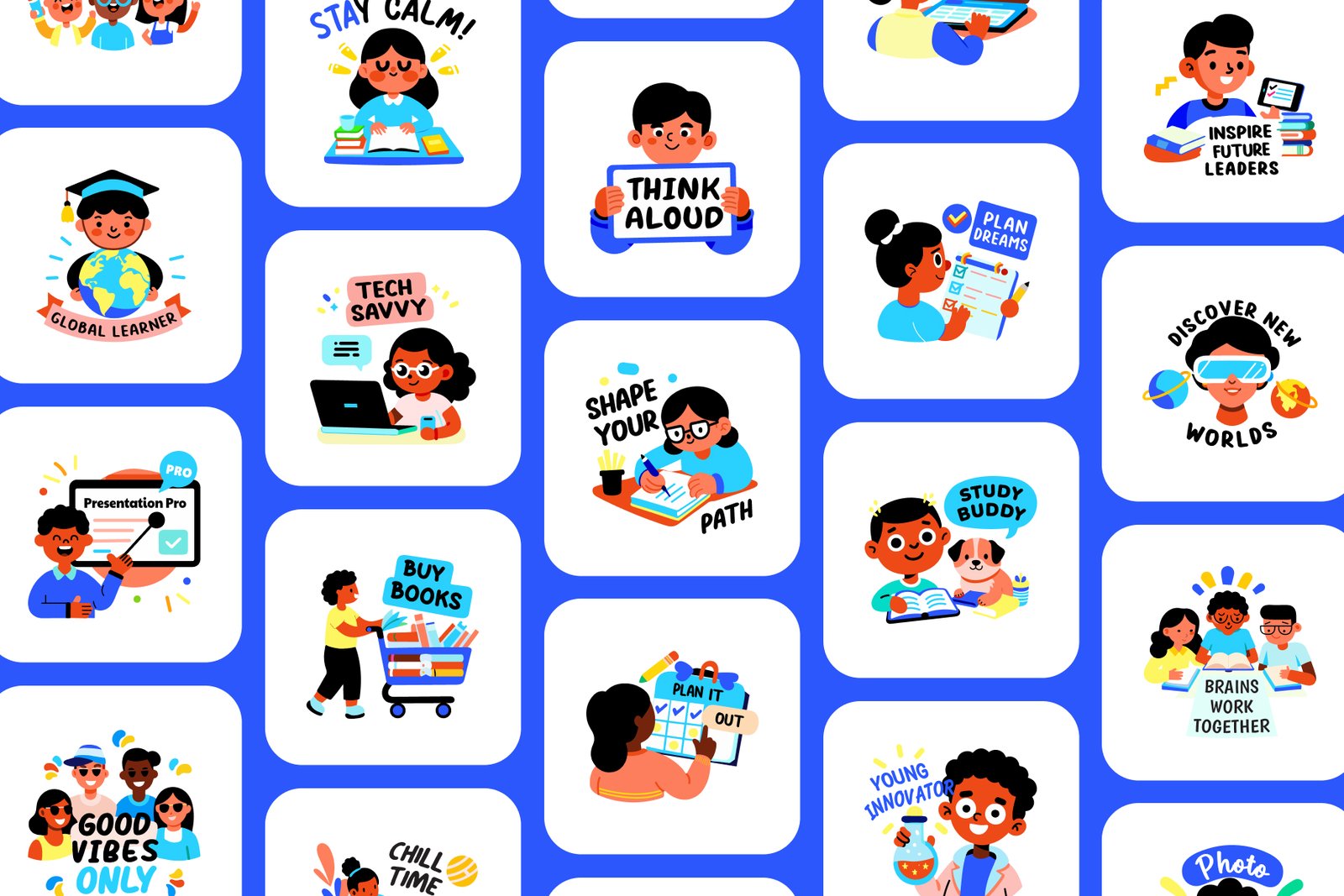 Transform your study space into a motivating environment with our dynamic college and university stickers Designed for students, these stickers are perfect for personalizing laptops, notebooks, classrooms, and dorm rooms. Whether you need a boost during cramming sessions, want to celebrate your graduation, or love books, these motivational, educational, and fun stickers fit every study vibe.