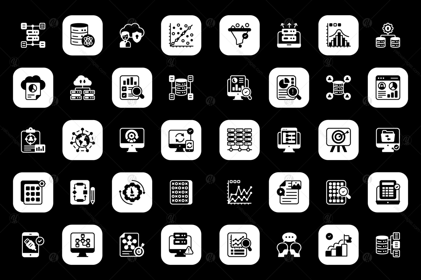Go with these data science solid icons. A technical pack includes data collection, risk analysis, data integration and much more. Perfect for data and scientific projects. Download with a single little click.