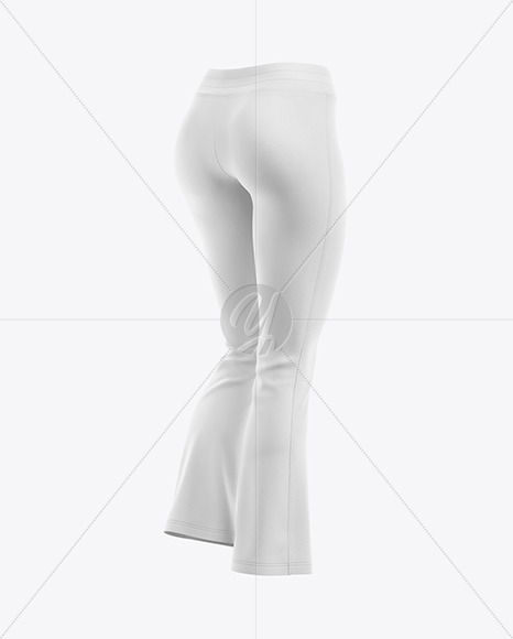 The Flare Pants Mockup is a versatile and trendy design featuring flared sweatpants in a sporty and fashionable style. This mockup provides a back half side view of the pants, highlighting the flattering silhouette and relaxed fit. Perfect for showcasing the latest ladies fashion trends, this mockup is ideal for designing casual and athleisurewear. The soft and comfortable fabric of the sweatpants is emphasized, making it suitable for both lounging at home or running errands in style. Elevate your fashion designs with this sleek and modern flare pants mockup.