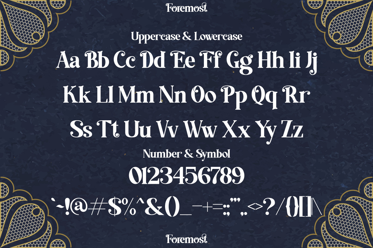 Foremost is a classy, bold upper and lowercase typeface that looks incredible in both large and small settings. Best used as a display for headings and logos, Foremost clean lines and smooth curves give any project an extra touch of class.