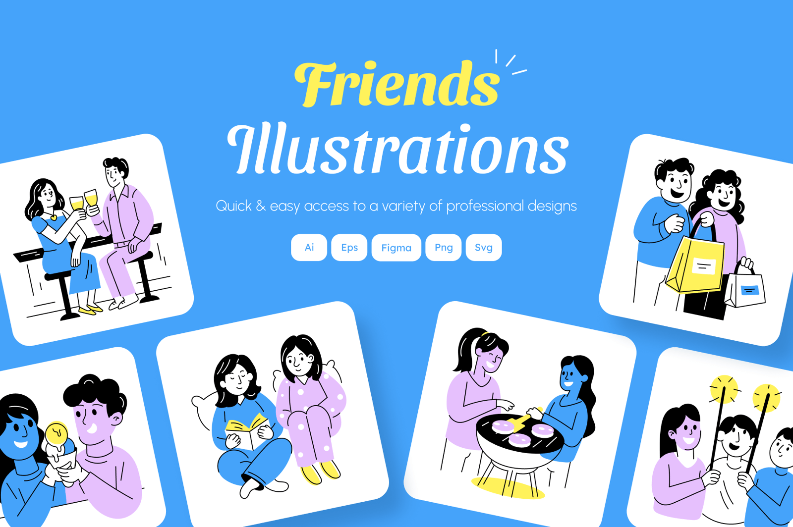 This Friends Illustration Art Set captures the essence of togetherness with heartwarming and expressive artwork. From joyful celebrations to everyday moments of connection, each illustration radiates warmth, positivity, and love. Perfect for greeting cards, posters, and creative projects, this collection brings the magic of friendship to life. Let your designs tell a story of connection, happiness, and cherished memories!