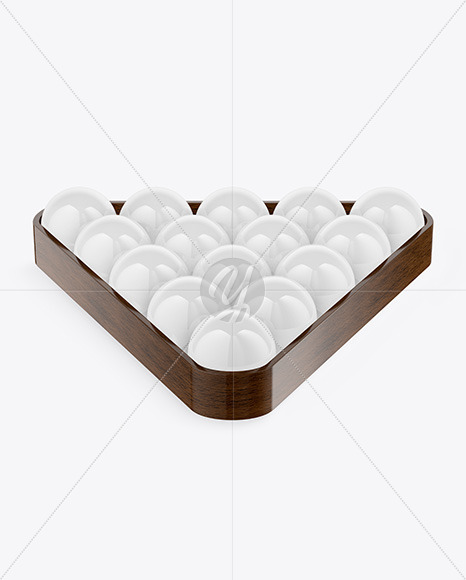 The Glossy Billiard Balls with Wooden Triangle mockup features a complete set of high-quality billiard balls, including the iconic 8-ball, housed neatly inside a sturdy wooden triangle frame. Each ball boasts a stunning glossy finish, accentuated with metallic and golden layers for added shine and durability. Ideal for both leisurely play at home and competitive snooker tournaments at the local pool or pub, this kit is perfect for any gamer or player looking to enhance their pool game. Whether it's a casual weekend getaway with friends or a week-long match, this set guarantees hours of fun and excitement. So cue up and sink those balls with ease and precision!