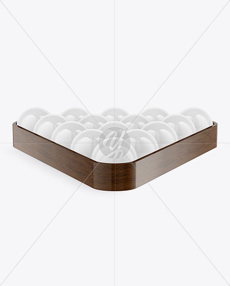 This mockup features a set of glossy billiard balls with a wooden triangle frame, perfect for any pool or snooker match. The set includes all 8 balls, each with a unique color and a glossy, metallic layer. The 8 ball is easily recognizable with its golden layer. This kit is great for players of all levels, whether you're a seasoned baller or just a casual gamer looking to play on the weekend. The triangle frame keeps each ball organized and in place, making it easy to set up for your next match. With a durable plastic construction, this set is designed to last through many games at the pub or in a tornment.