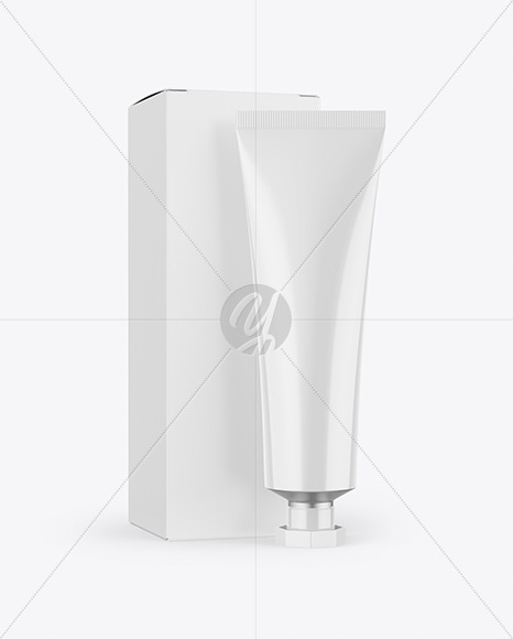 Glossy Cosmetic Tube & Box Mockup