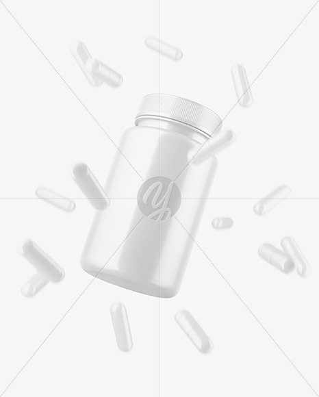 Glossy Pills Jar w/ Flying Pills Mockup