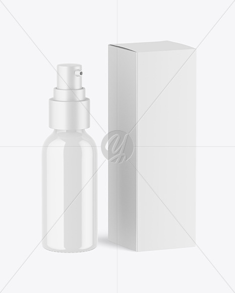 Glossy Pump Bottle w\ Box Mockup