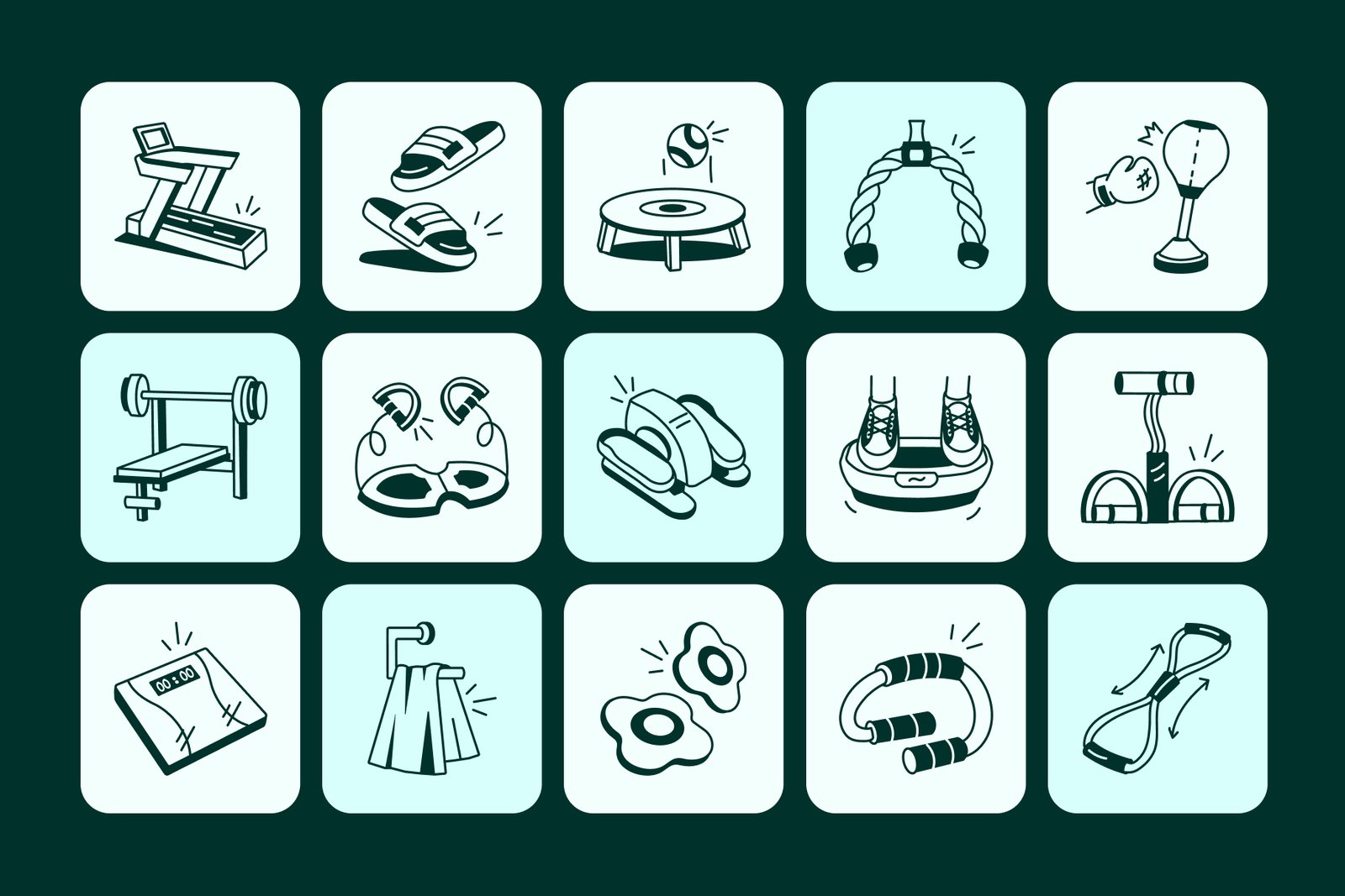 Make your fitness themed designs stand out with this gym doodle icons pack! Whether you're designing workout apps, gym posters, fitness planners, or social media content, these fun and energetic doodles will add a fresh and engaging touch. Perfect for personal trainers, fitness bloggers, and gym owners looking to add a creative edge to their visuals.