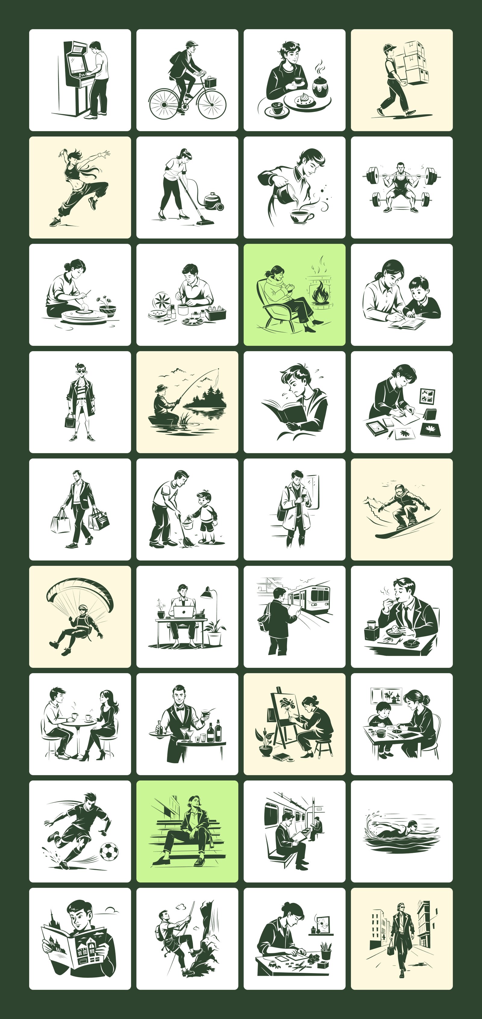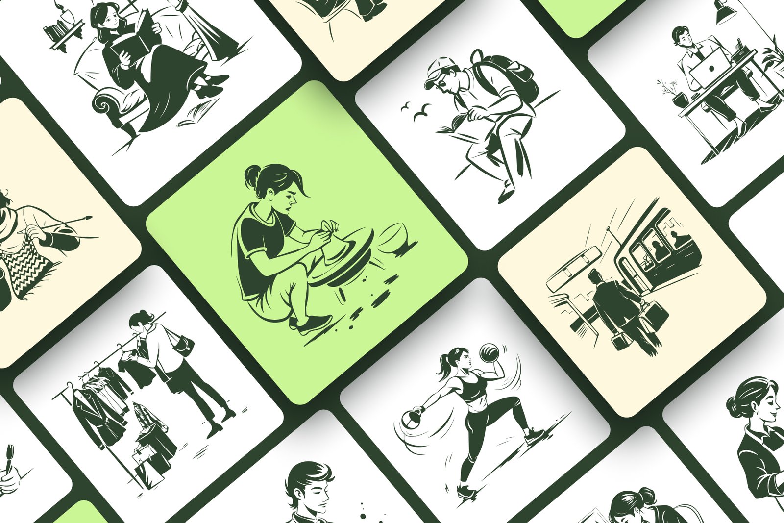 Bring your designs to life with these beautifully hand drawn lifestyle illustrations. Perfect for every story of daily life – from outdoor adventures to cozy indoor moments. Whether you’re looking for a healthy lifestyle vibe or a frugal living aesthetic, these unique artworks are designed to add personality and warmth to any project.