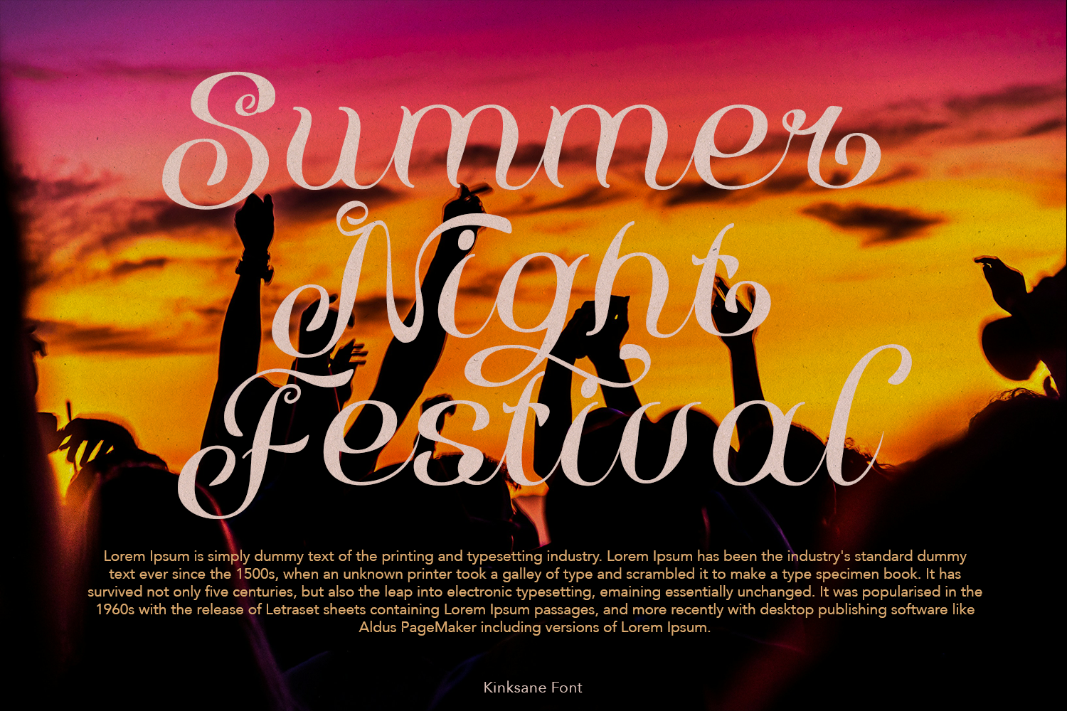 Kinksane is a classic script font comes with curly style with much alternative and ligature. This font is very perfect for many display purposes in your product design if you want to a modern vintage style look. Such as book covers, product labels, logos badges, drink bottles, tattoo shop, coffee shops, and many more.