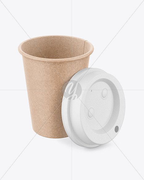 Kraft Coffee Cup with Biodegradable Lid Mockup