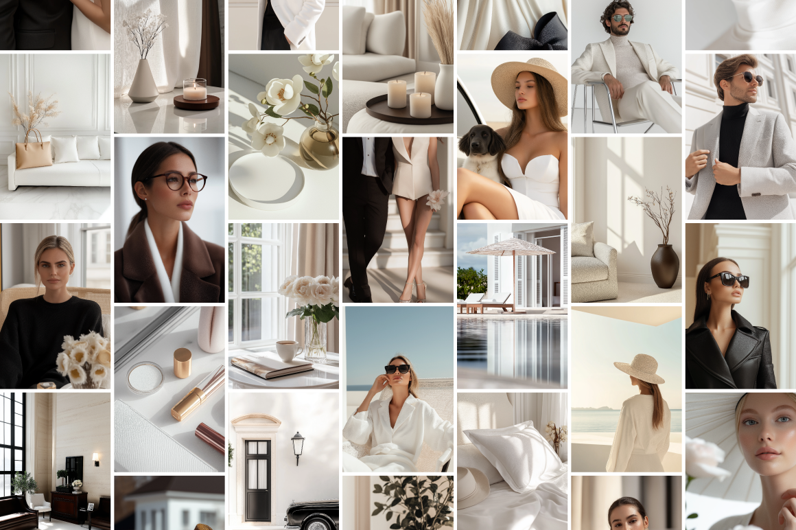Luxury Glamour is a collection of 153 photos for your stylish projects and social media designs. Glamorous modern lifestyle photos in the style of a glossy magazine cover will perfectly complement your projects and decorate any of your creations with a luxurious atmosphere. Created using the latest amazing AI technology and handcrafted.