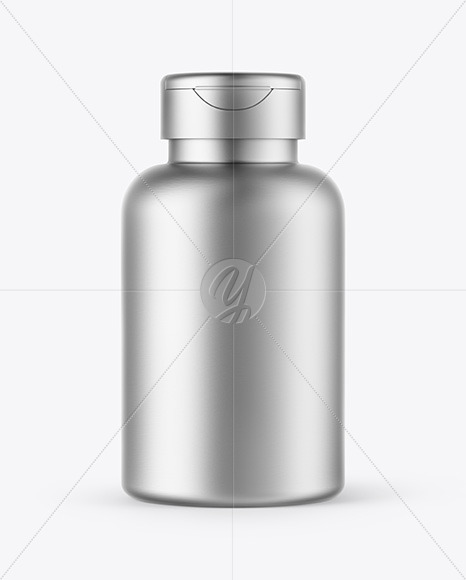 This photorealistic mockup features a metallic pills bottle with a convenient flip cap design. The sleek and modern design of the bottle makes it perfect for showcasing supplement or medication product designs. The high-quality rendering and detailed textures give a realistic look to the mockup, making it ideal for presenting packaging designs to clients or for use in promotional materials. Overall, this mockup is a versatile and professional tool for showcasing pill bottle designs.