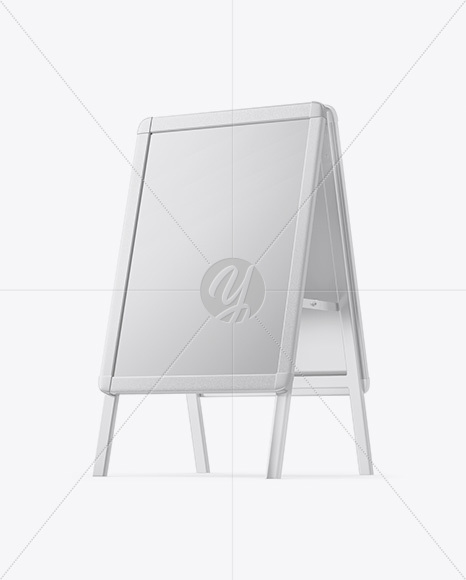 Introducing the Metallic Street Stand Mockup - a highly versatile and eye-catching mockup designed for advertising your brand or menu in an outdoor setting. This 3/4 view mockup features a metallic sandwich board that can be easily customized to display your latest offerings or promotions. From enticing new dishes to upcoming events, this mockup is perfect for any kind of outdoor advertising. With a half side view, this mockup showcases the attention-grabbing capabilities of the metallic board. Use this mockup to turn heads and generate interest in your brand or business with ease!