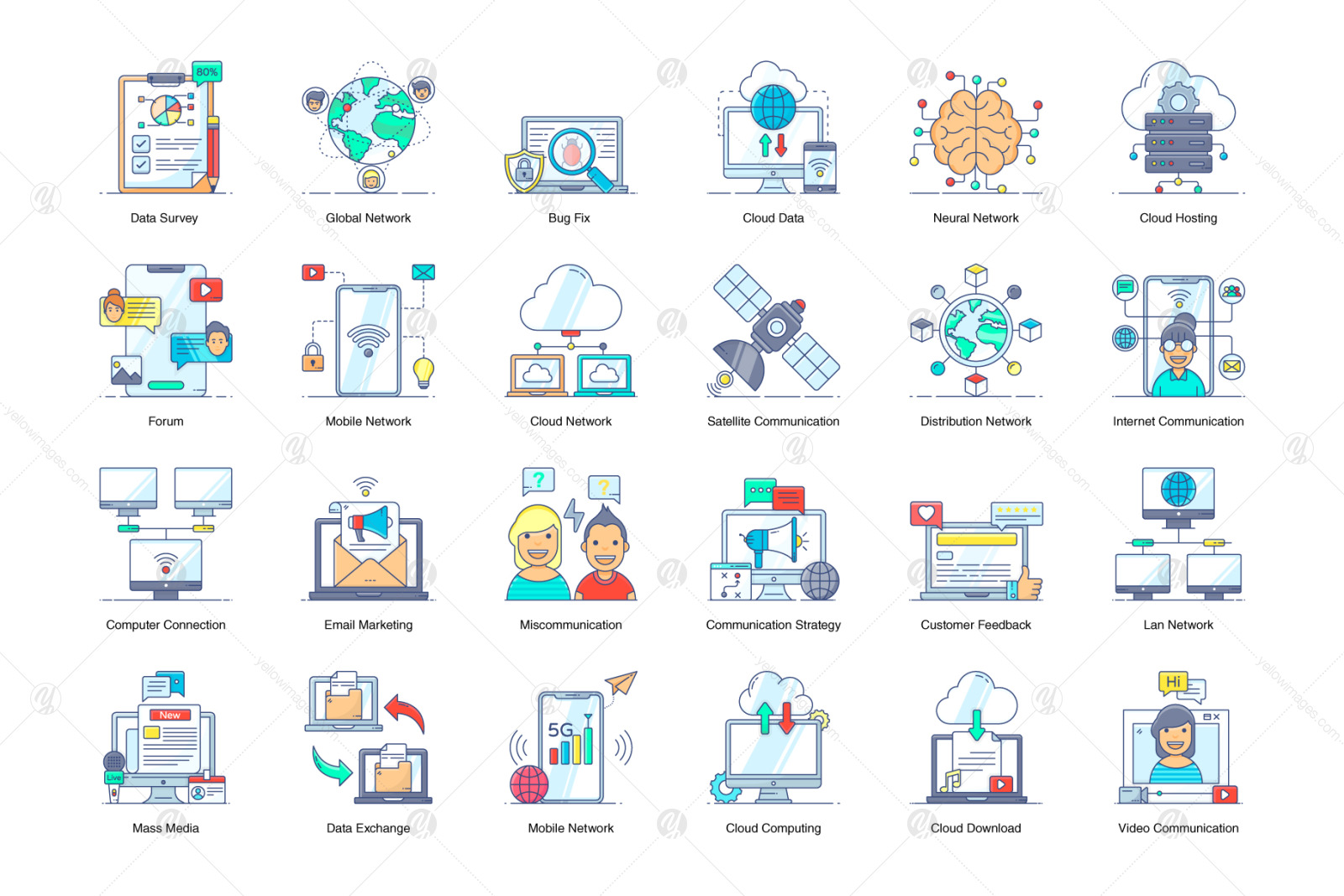 Networking and Communication Flat Icons
