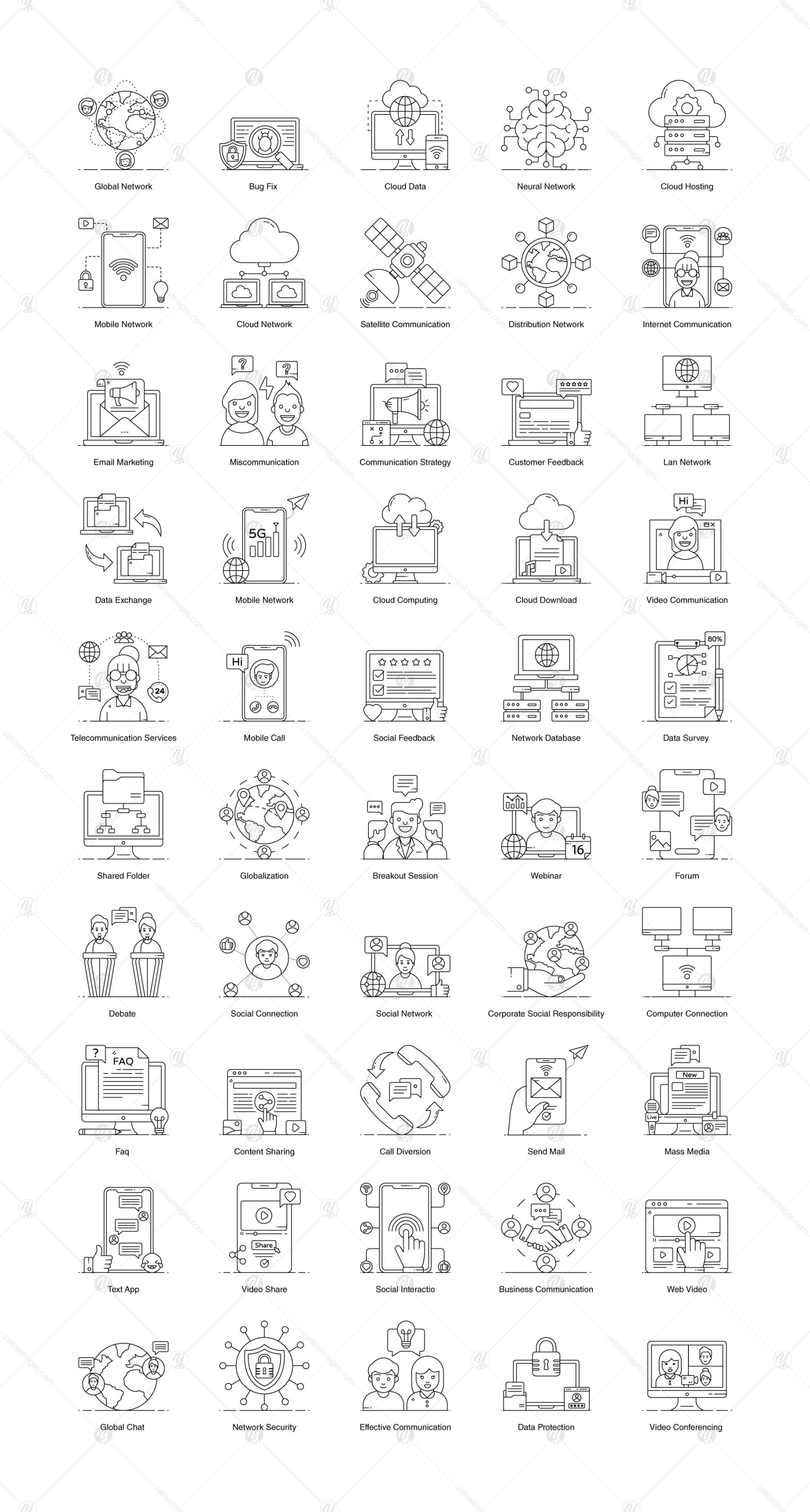 Networking and communication pack is here in your reach, having amazing editable quality. This set helps you while creating the best graphic art project. You can effectively communicate, network security, data protection and much more vectors. Get this set and enjoy the best design!