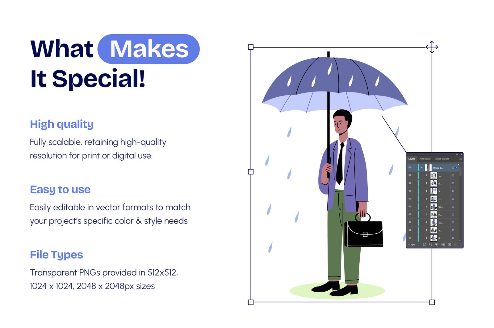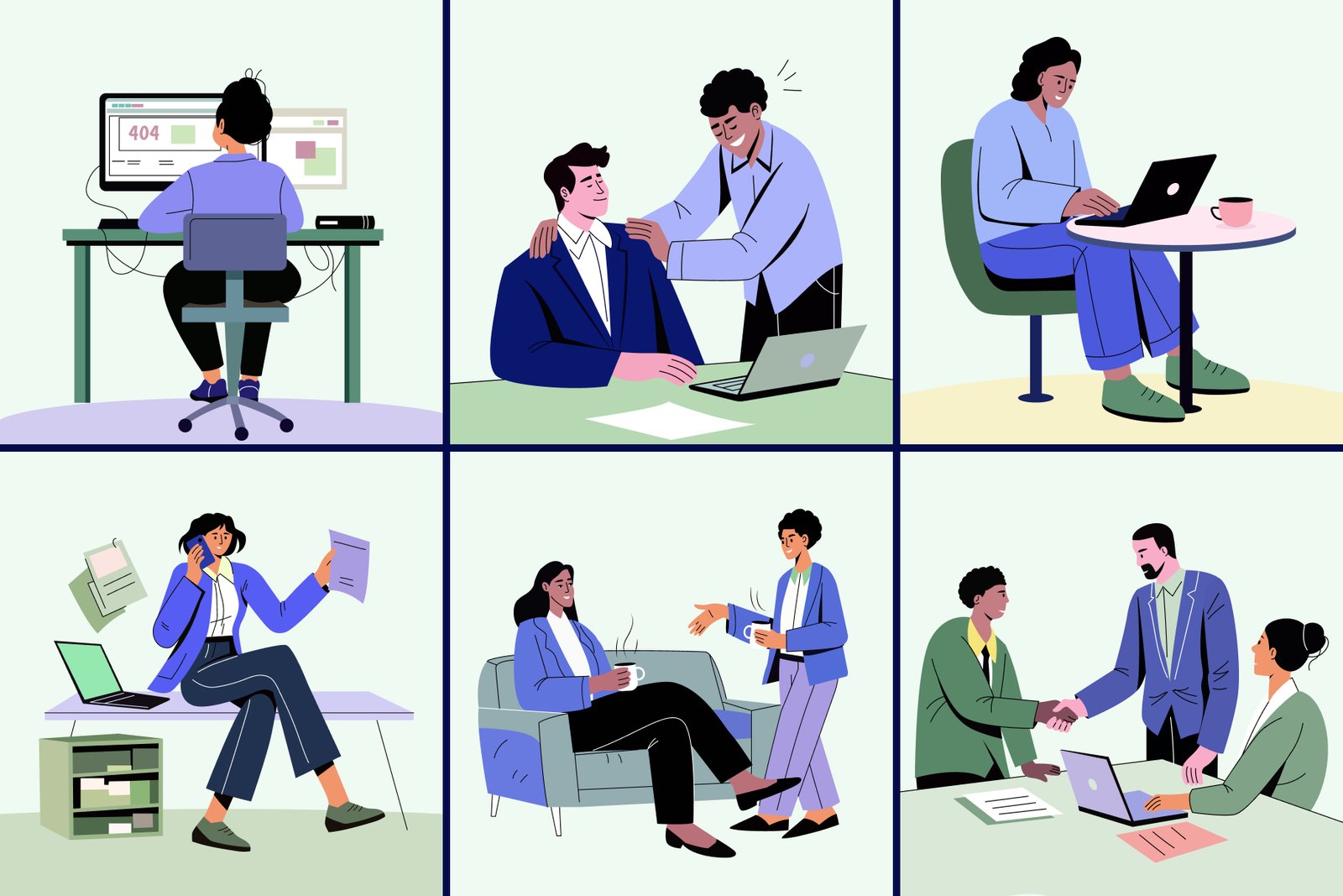 Add a modern and inspiring touch to your creative projects with this unique office illustration art set. Featuring a diverse range of workspaces, equipment, and business elements, each illustration captures the energy and style of today’s professional environments. Ideal for showcasing productivity, creativity, and collaboration, this collection brings visual interest to presentations, branding, websites, and social content.