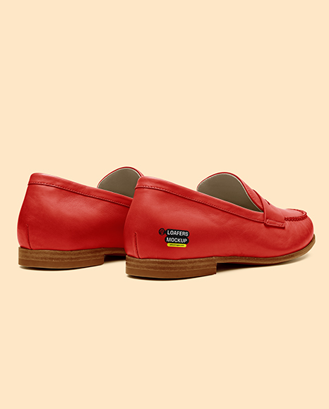 Present your shoe designs with realism and professionalism using this Pair of Women’s Leather Loafers Mockup in a rear angle view.