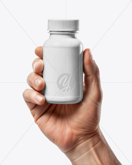 The hand is expertly holding the jar, emphasizing its convenience and portability. The screw cap adds a touch of authenticity to the mockup, while the label allows you to easily personalize the packaging with your branding. Ideal for showcasing medicines, drugs, vitamins, or dietary supplements, this mockup is versatile and professional. Whether you're designing for a pharmacy, CBD products, or any other healthcare-related items, this mockup is a perfect choice to showcase your work.