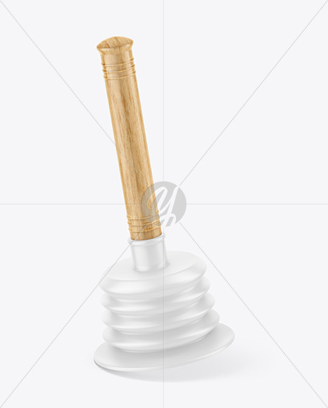 The Plunger With Light Wood Handle Mockup is an exceptional design template that presents a high-quality image of a household plunger. The mockup showcases the plunger in a glossy finish, elevating its aesthetic appeal for plumbing-related presentations. This mockup is ideal for designing posters, flyers, and brochures related to household plumbing. It readily conveys the reliability and efficiency that users can expect from this essential household tool.