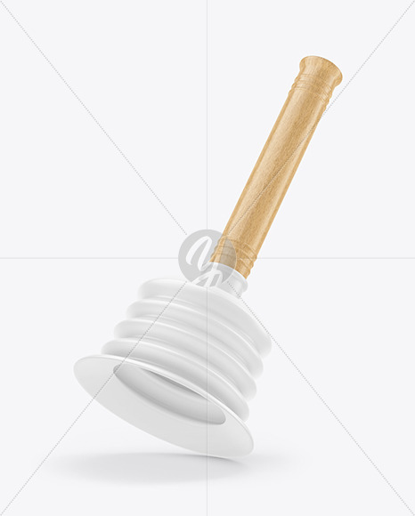 The Plunger With Light Wood Handle Mockup is an exceptional design template that presents a high-quality image of a household plunger. The mockup showcases the plunger in a wooden finish, elevating its aesthetic appeal for plumbing-related presentations. This mockup is ideal for designing posters, flyers, and brochures related to household plumbing. It readily conveys the reliability and efficiency that users can expect from this essential household tool.
