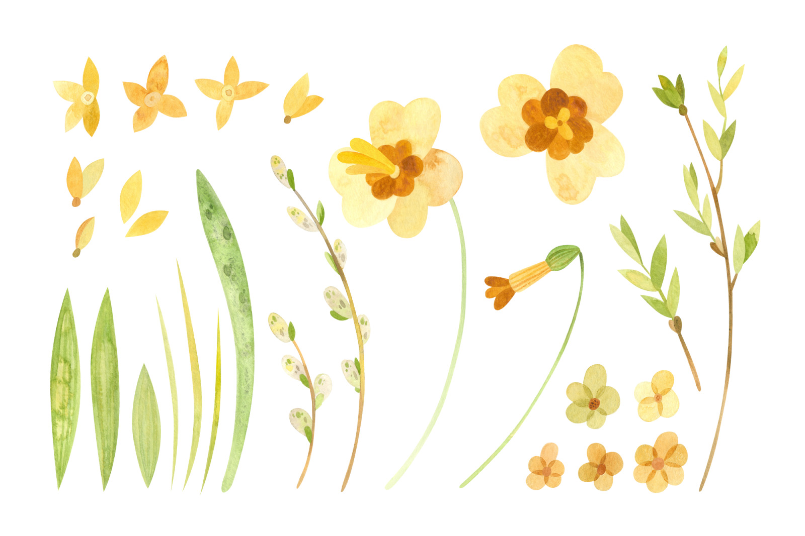 Rustic Easter watercolor clipart, seamless patterns and card templates with cute baby bunnies, Easter eggs and spring flowers.