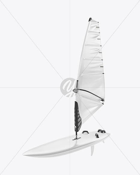 The Sailboard Mockup - Half Side View is a stunning depiction of the extreme water sport that is boardsailing, also known as sailboarding or windsurfing. This mockup showcases a sailboard, the board used in the sport, from a half side view, highlighting its sleek and aerodynamic design. Perfect for water enthusiasts who love to feel the wind in their face, sailboarding is a thrilling sport that demands skill and courage. Whether you're looking to catch some waves or simply glide across the water, the Sailboard Mockup - Half Side View is an impressive depiction of this exhilarating activity.