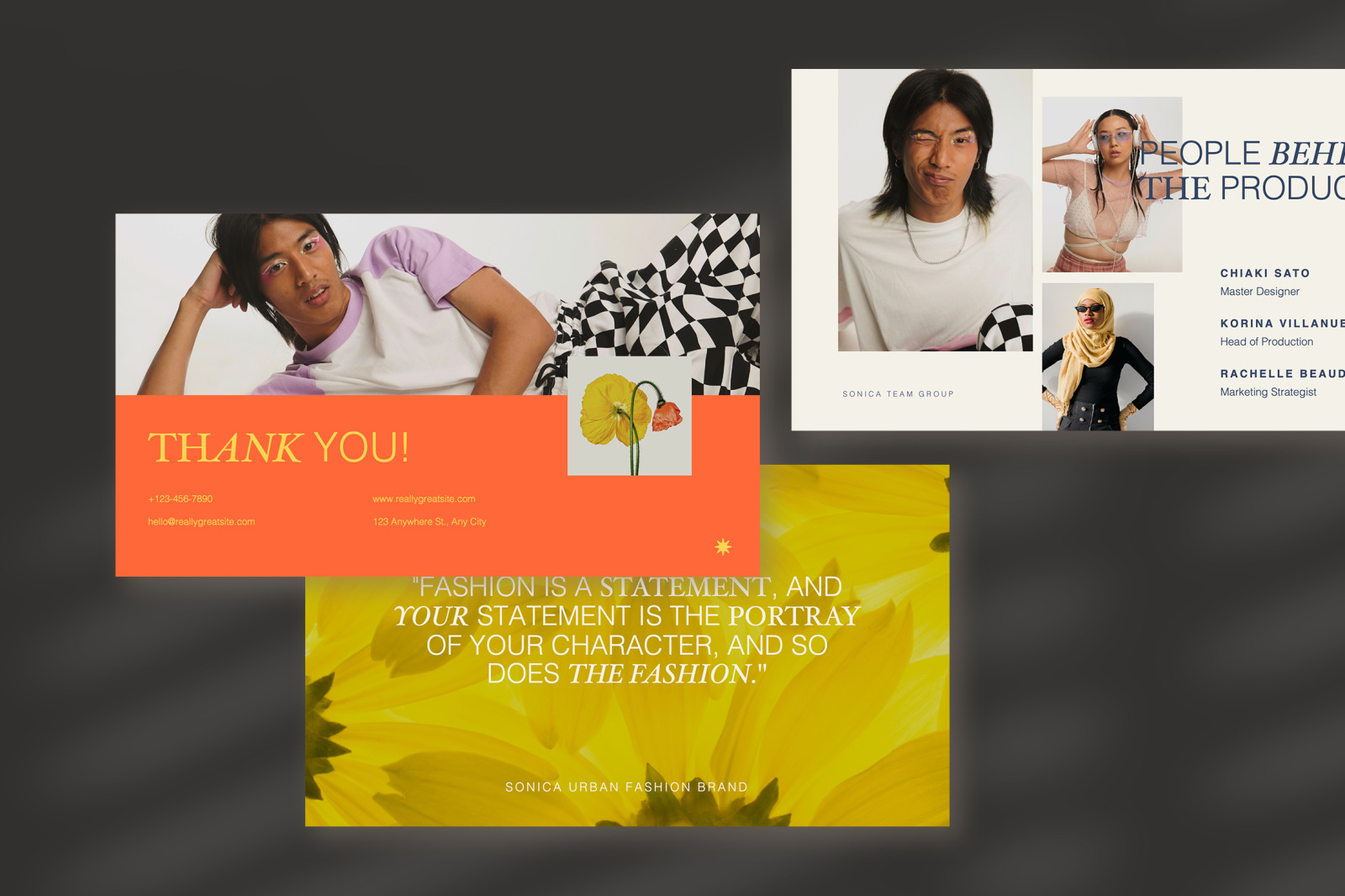 Sonica, the bold urban editorial magazine brand guidelines presentation template, provides you with 15 unique template designs, available in PPT and PPTX format files. You can edit the text, image, and color on the template using Microsoft PowerPoint or any other compatible application on your device to be more like your preferences or needs.
