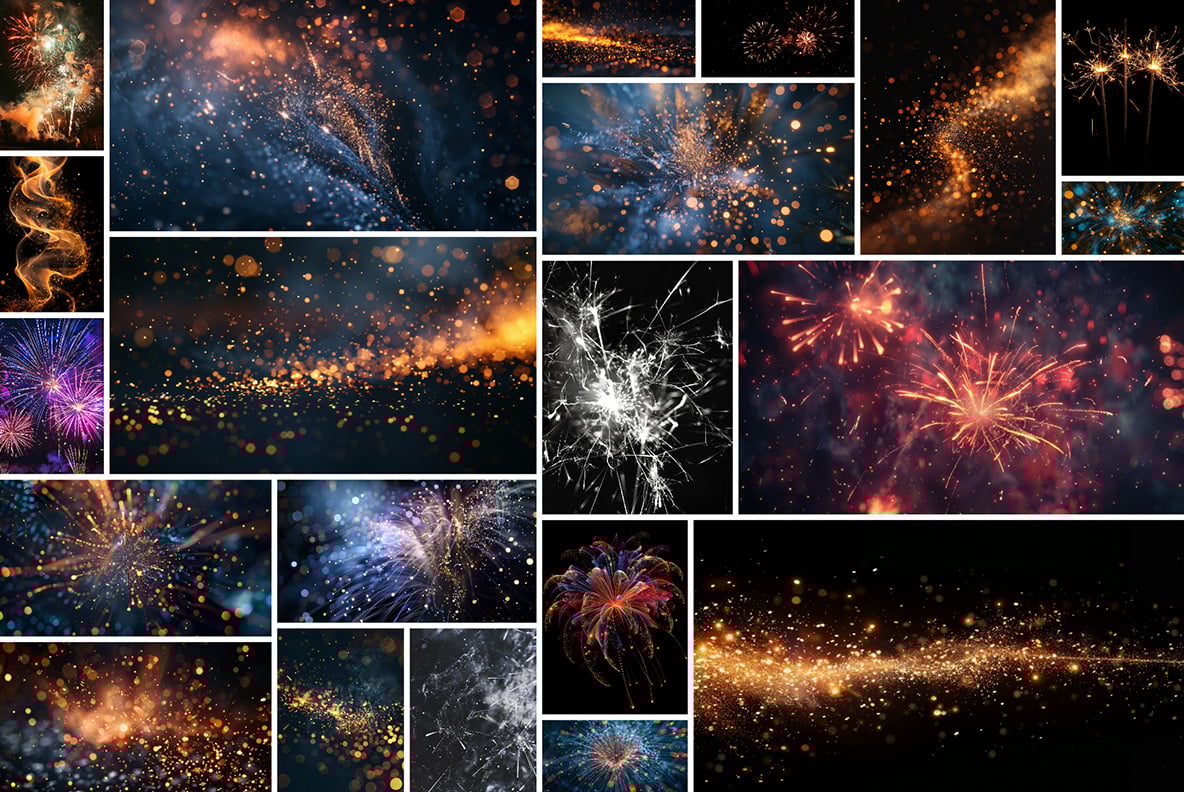 This stunning collection features 71 photorealistic images of glowing sparklers set against a dramatic black background. Each image captures the magic of light in motion—tiny bursts, trails, and glowing particles that shimmer with celebration. Ideal for festive designs, party invitations, holiday graphics, or any creative project that calls for a sparkling touch. Whether you're evoking New Year's Eve, a wedding night, or a joyful celebration, these visuals bring dynamic energy and radiant beauty. Let your designs shine with the vibrant charm of real sparkler effects, captured in high detail to illuminate your creative vision with warmth and wonder.
