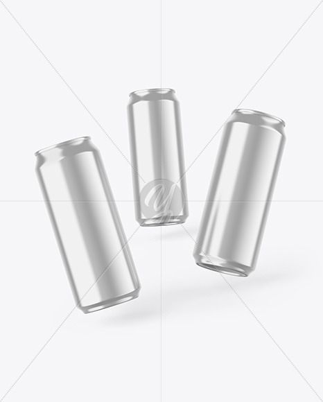 Three Glossy Metallic Cans Mockup