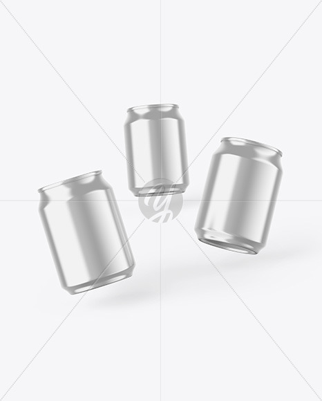 Three Glossy Metallic Cans Mockup