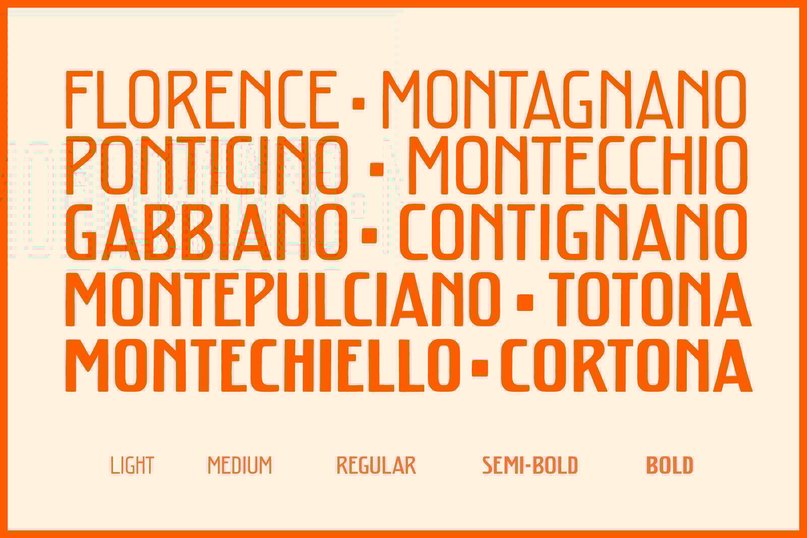 Inspired by the idyllic charm of Tuscany. The gently rolling hills and characterful medieval back streets of have influenced the natural shapes of the letterforms.
