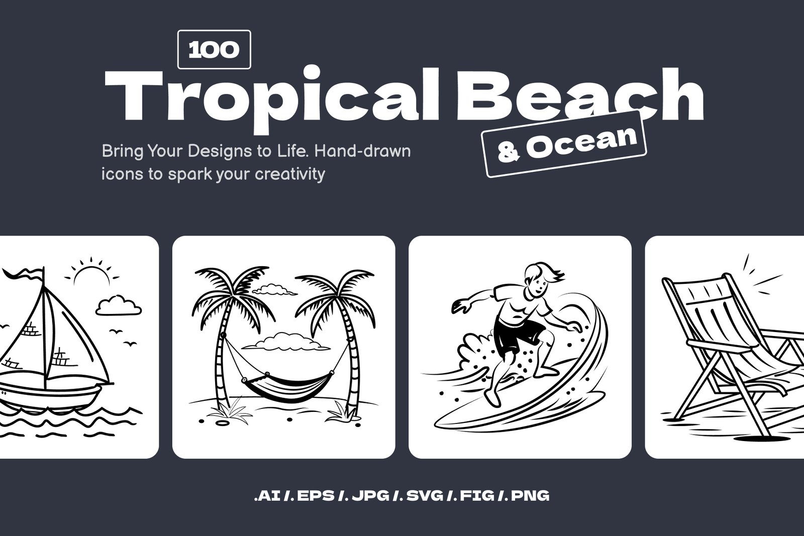 Unleash your creativity with this Tropical, Beach, and Ocean Doodle Pack! Featuring a variety of sun-soaked designs inspired by sandy shores and ocean breezes, these icons add a touch of tropical flair to any project. Perfect for web, social media, print, and app design, these doodles come in versatile formats and sizes, so they fit seamlessly into any creative workflow. Make your designs pop with a splash of summer style!