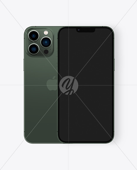 Two iPhones 13 Pro Max Alpine Green Mockup
