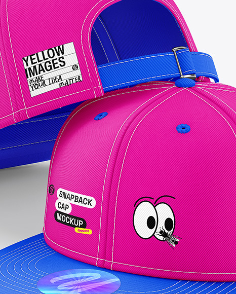 The Two Snapback Caps Mockups is the ultimate accessory for any fashion-forward clothing line. The flat brim, snapback closure, and metal belt buckle add to the trendy look of the headwear. The cap mockups also feature a sticker label for a personalized touch. The flat visor makes the cap suitable for any face shape, and the caps themselves are an excellent addition to any apparel mockup. The versatile headwear is a must-have for any garments line looking to add a touch of fashion to their collection.