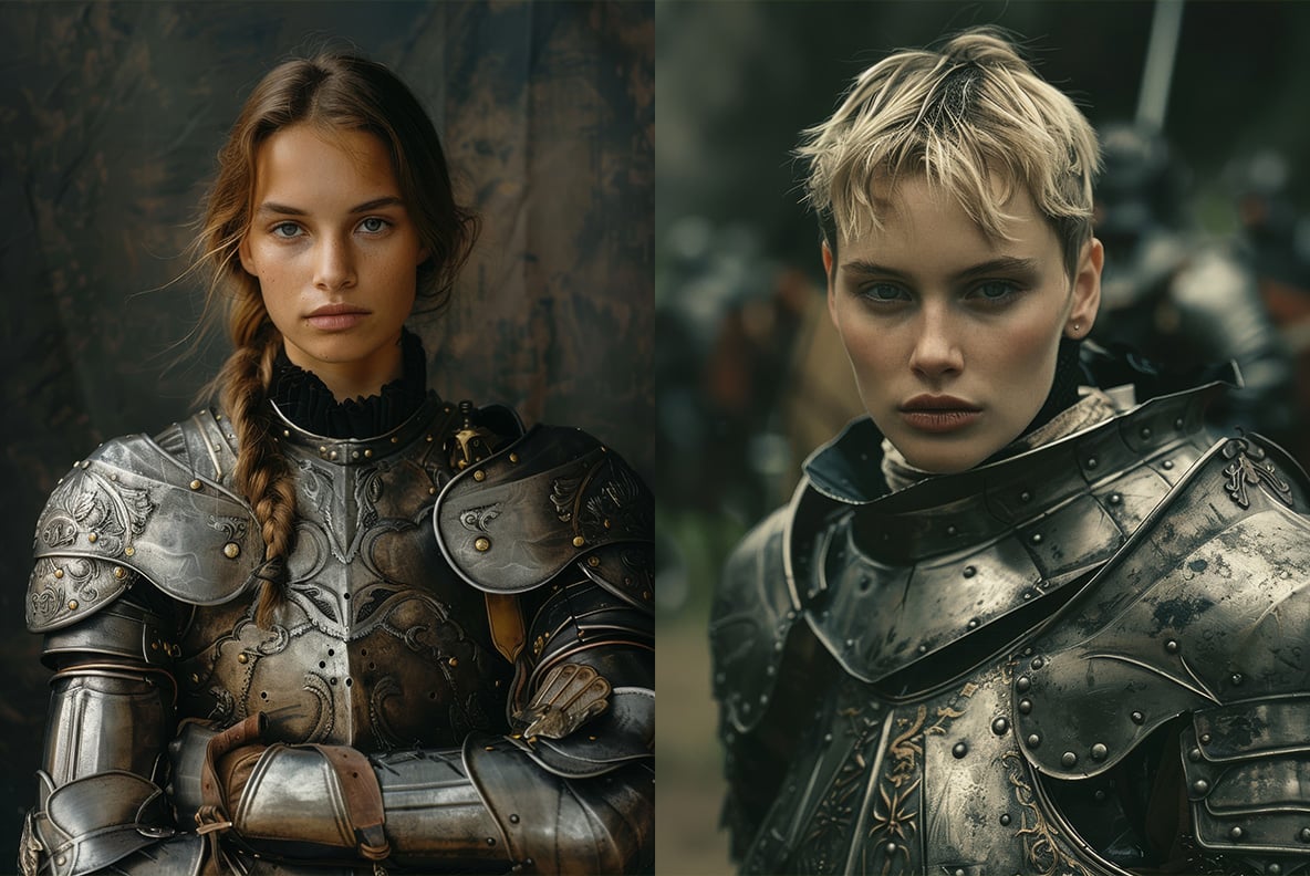 Step into the realm of medieval valor with **"Woman Knight in Armor"**, a collection of 84 stunning photorealistic images. Featuring a fierce red-haired female warrior with piercing blue eyes, each image captures her strength, determination, and the raw energy of battle. Dressed in intricate armor, wielding medieval weapons, and embodying the essence of chivalry, these visuals celebrate women's power and courage. Perfect for storytelling, fantasy art, or bold designs, this collection brings a striking knight's spirit to life.