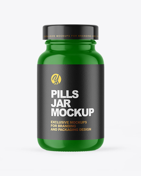 Green Glass Pills Jar Mockup