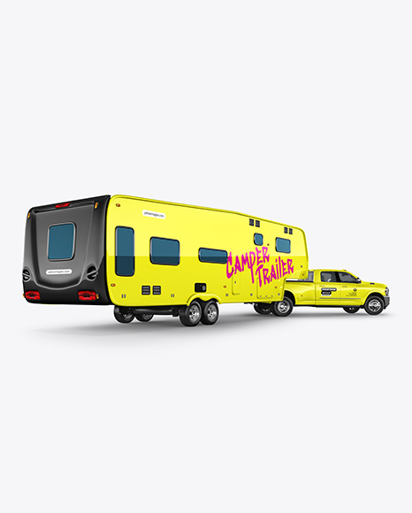 Pickup Truck W\ Camper Trailer Mockup